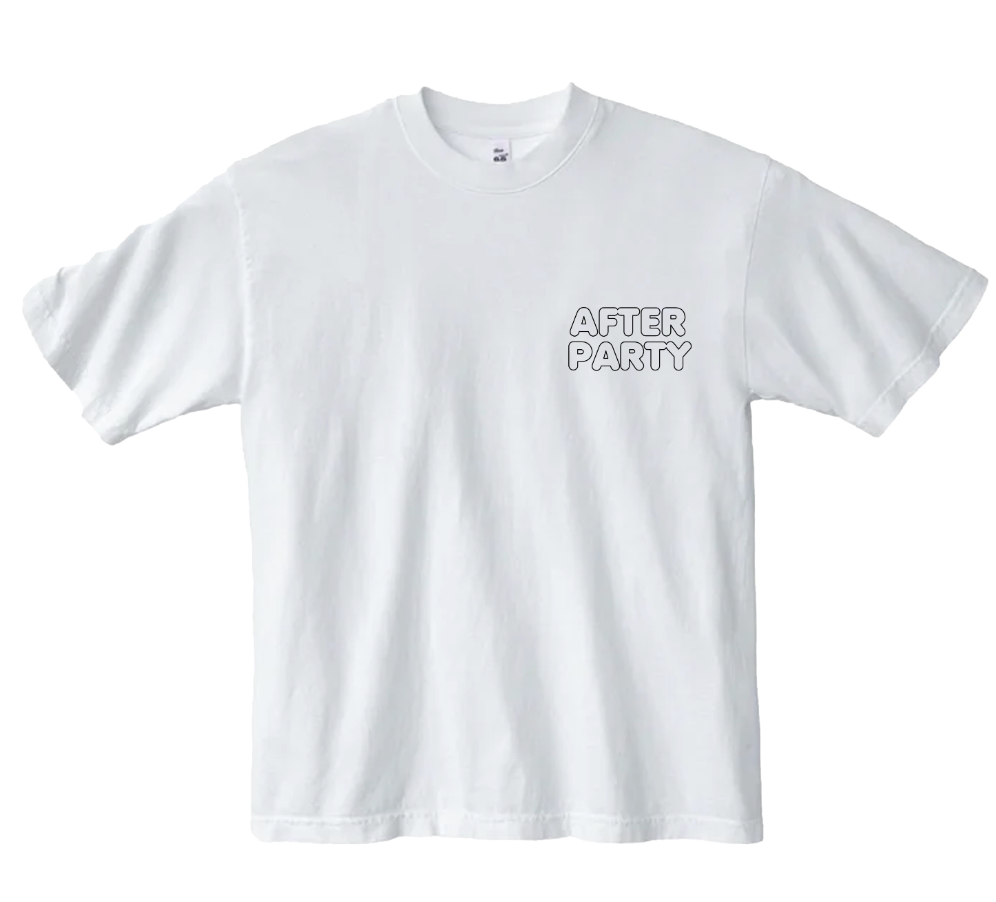 After Party logo featured on the front and Biggie baby graphic on the back of a white tee.